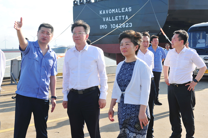 7月9日下午,江蘇省副省長李忠軍率隊(duì)蒞臨我揚(yáng)子江船業(yè)開展調(diào)研工作。泰州市委副書記、市長萬聞華,省政府副秘書長桂俊,省工信廳副廳長李鋒,省藥監(jiān)局局長田豐,以及泰州市委常委、常務(wù)副市長秦猛,泰州市政府秘書長包亞,靖江市委書記申強(qiáng),靖江市委副書記、代市長黃衛(wèi)平等陪同調(diào)研。揚(yáng)子江船業(yè)集團(tuán)董事長任樂天、集團(tuán)副董事長張宏飛等人熱情接待。
