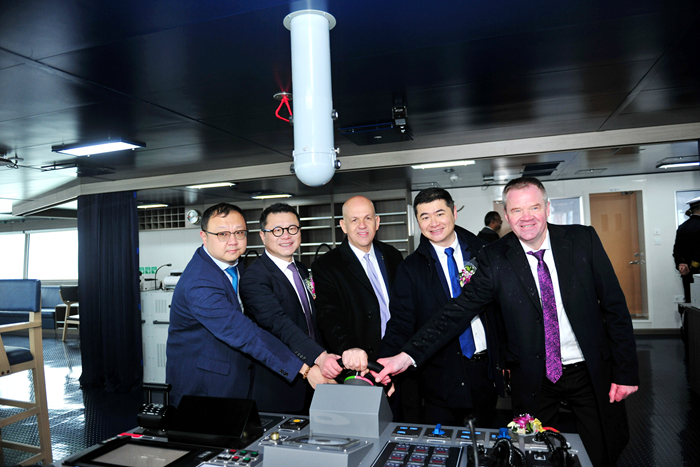 20241210日上午,我集團(tuán)與SEASPAN、以星航運(yùn)共同為本船舉行了隆重的命名儀式。命名人Dimpple Rana女士,以星航運(yùn)中國(guó)總裁華向前先生,SEASPAN公司資產(chǎn)管理部項(xiàng)目經(jīng)理蘇小華先生,DNV船級(jí)社中國(guó)北方區(qū)總經(jīng)理晏曉琳女士,以及我集團(tuán)副總經(jīng)理兼新?lián)P子造船總經(jīng)理杜成忠先生、集團(tuán)副總經(jīng)理吉宏飛先生、新?lián)P子造船副總經(jīng)理倪榮先生等領(lǐng)導(dǎo)和嘉賓共同出席了命名儀式。Dimpple Rana女士將新船命名為ZIM AQUAMARINE”輪,為新船砍纜、擲香檳禮并與嘉賓們登船參觀。汽笛鳴響,祝福新船以及隨船船員航行平安,為船東和租家?guī)順s譽(yù)和財(cái)富。