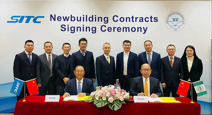 11月30日,雙方再次聚首上海,共同簽署1艘2700TEU集裝箱船和4艘2400TEU裝箱船的新造船訂造合同。集團(tuán)董事長(zhǎng)任樂(lè)天先生,集團(tuán)副總經(jīng)理張濤先生,海豐國(guó)際董事局副主席兼首席執(zhí)行官楊現(xiàn)祥先生,海豐國(guó)際執(zhí)行董事、海豐航運(yùn)集團(tuán)總裁薛明元先生,海豐航運(yùn)集團(tuán)副總裁肖森元先生等共同見(jiàn)證新訂單成功簽約。