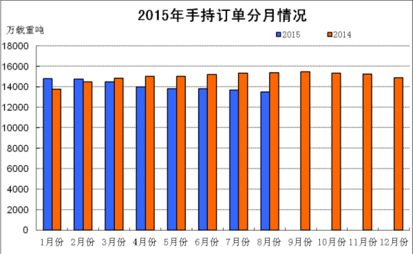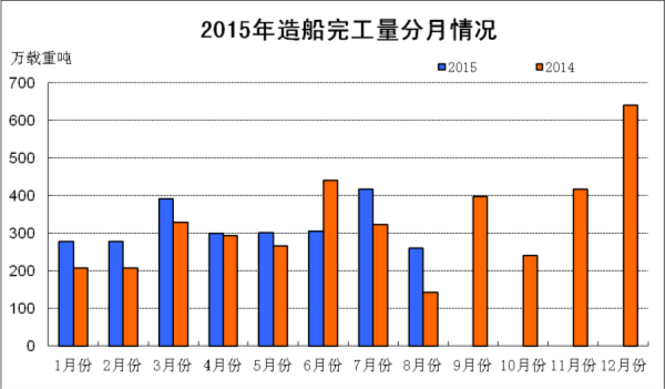 2015年1~8月份船舶工業(yè)經(jīng)濟運行情況