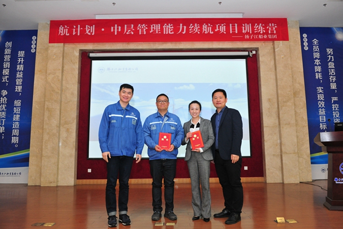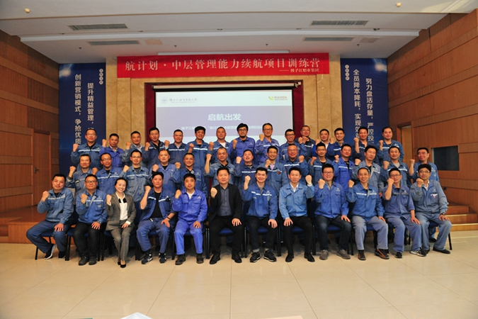 4月7日,集團(tuán)“航計(jì)劃”中層管理能力續(xù)航項(xiàng)目訓(xùn)練營(yíng)啟動(dòng)會(huì)在新?lián)P子多功能廳舉行,集團(tuán)總經(jīng)理任樂天,集團(tuán)副總經(jīng)理宋書明、副總經(jīng)理杜成忠、副總經(jīng)理張宏飛等公司領(lǐng)導(dǎo),集團(tuán)三大造船子公司的生產(chǎn)管理部部長(zhǎng)級(jí)干部和生產(chǎn)車間主任(主持工作)共34名學(xué)員共同參加了啟動(dòng)會(huì)。