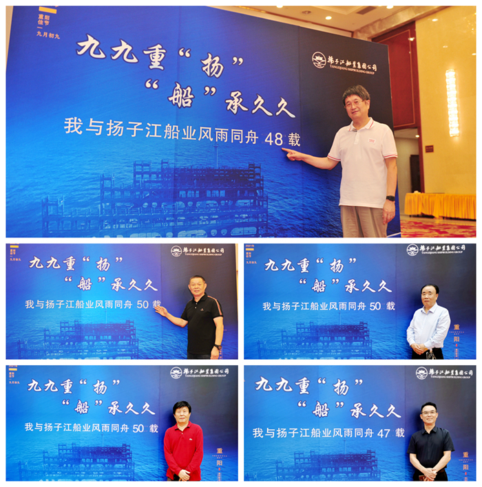 On October 14th the Double Ninth Festival, representatives of retired veteran cadres of Jiangyin Transportation Bureau, retired veteran cadres of YZJ and veteran experts gathered together to participate in the theme of "Double ninth festival “l(fā)ongevity” Shipbuilding inheritance for a long time" double Ninth Festival activities. Everyone talked together and spent a happy and warm holiday together. Honorary Chairman Ren Yuanlin,Chairman Ren Letian and other leaders of the Group participated in the activity.