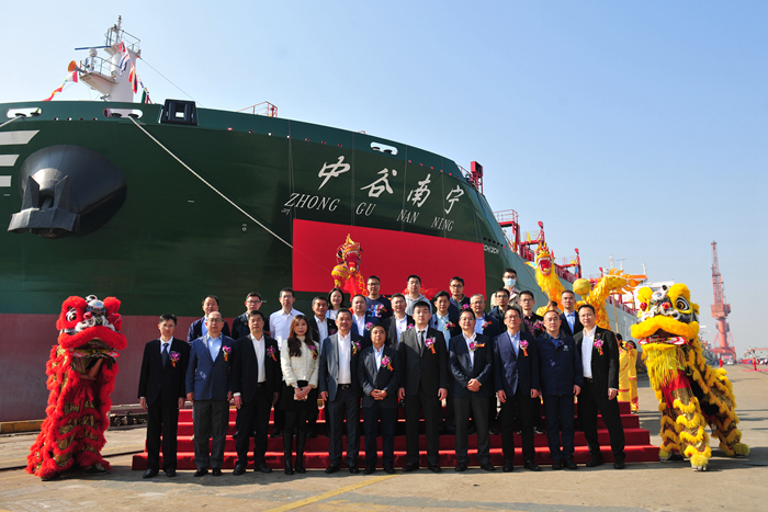 Mr. Xia Guoqing, VicePresident of Zhonggu Shipping Group, sponsor Mr. Lu Changwei, Senior Manager of Zhonggu Shipping Group, Mr. Wang Gangyi, Chief Engineer of Shanghai Ship Design andResearch Institute, Mr. Wang Gang, Deputy General Manager of Shanghai Instituteof CCS, Ms. Yang Yunqing, Marketing Director of Intercontinental ShippingManagement Group Co., Ltd., Mr. Du Chengzhong, Deputy General Manager of YZJShipbuilding Group, Zhang Tao, Deputy General Manager of YZJ Shipbuilding Group,Zhou Kewei, Deputy General Manager of YZJ Shipbuilding Group and other leadersand guests attended the naming ceremony.