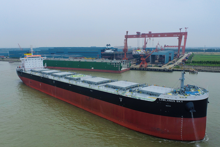 On May 26, the 82,300 DWT bulk carrier"LOWLANDS SKY" (also known as "Loulan Sky" and registeredunder the Panama flag), built by YAMIC for a Japanese shipowner, wassuccessfully delivered and left the shipyard.