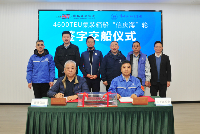 On March 20, the shipowner and the shipyard signed the delivery protocols. With the delivery of the "Xin Qing Hai", the two 4600TEU series container vessels built by our group for Trawind Shipping were successfully conculded.